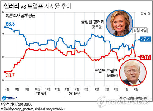 지난 미 대선에서 패한 힐러리는 여론조사에서는 꾸준히 트럼프에 앞섰다.