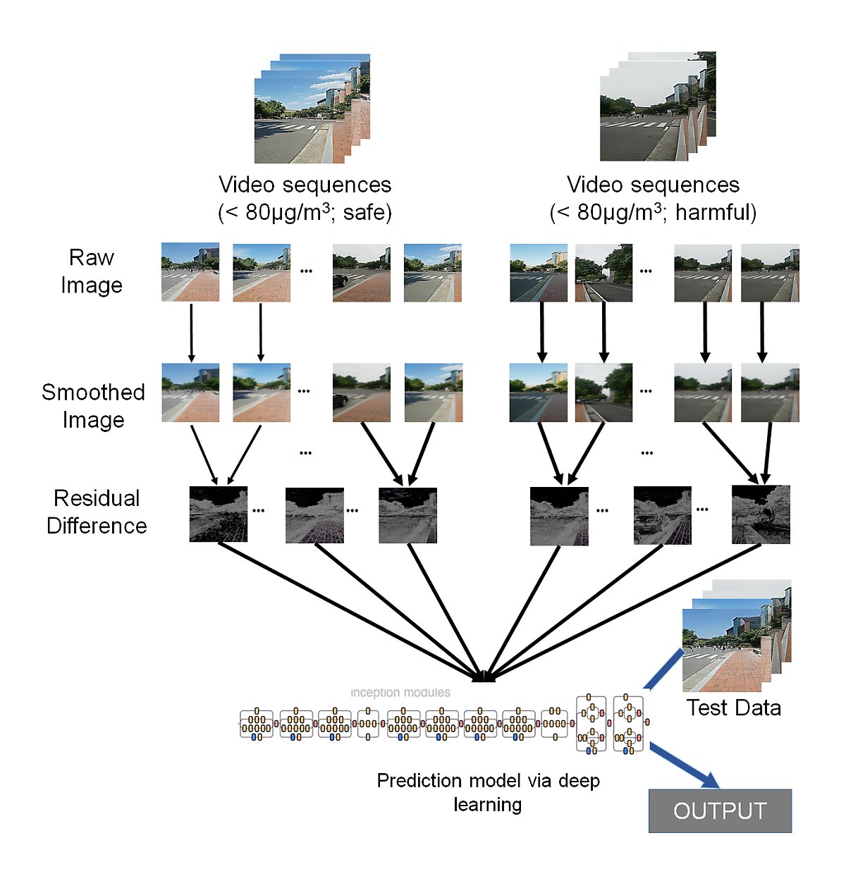 자체 제작한 인공지능 알고리즘을 통해 미세먼지가 많은 날과 미세먼지가 적은 날의 데이터를 나눠서 수만 장의 이미지를 계속해서 학습시키고 있다고 하니,