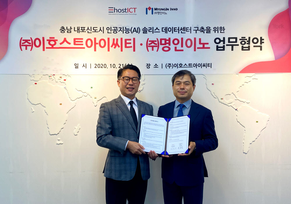 인공지능(AI) 데이터센터 전문기업 이호스트ICT(대표 김철민)가 고성능 컴퓨팅 시스템 전문기업 명인이노(대표 원용선)와 인공지능(AI) 솔리스 데이터센터(IDC) 구축을 위한 업무협약서(MOU)를 교환했다고 26일 밝혔다.
