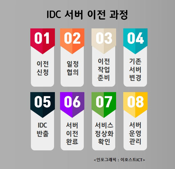 'IDC 무료 이전 서비스'는 단순한 장비 이전을 떠나 물리적, 소프트웨어적으로 장애 없이 진행되는 것이 중요하다. 이호스트ICT는 2004년 설립 이래 16년간 수많은 IDC 이전 서비스를 진행한 노하우를 가지고 있다.