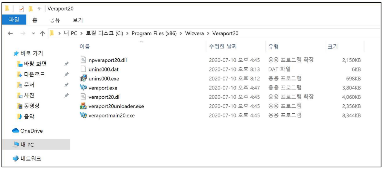 - 내 컴퓨터 → 로컬디스크(c:\) → Program Files(X86) → Wizvera → Veraport20