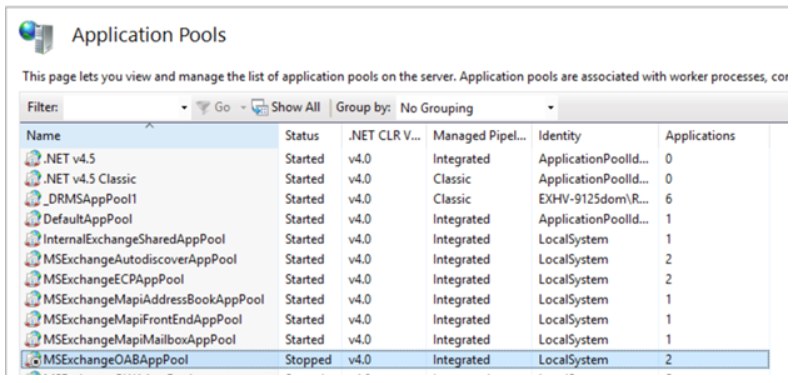 o OAB Application Pool 상태 확인