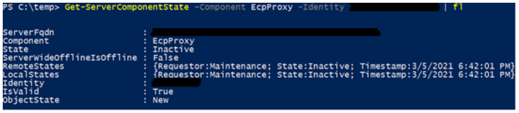 ※ Get-ServerComponentState –Component EcpProxy –Identity “ComputerName” | fl