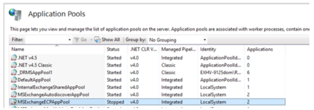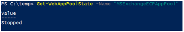 ※ Get-WebAppPoolState –Name “MSExchangeECPAppPool”