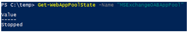 ※ Get-WebAppPoolState –Name “MSExchangeOABAppPool”