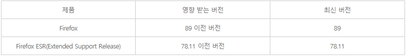 o Firefox와 ESR에서 메모리 충돌로 인해 발생하는 임의코드실행 취약점(CVE-2021-29967) 등 8개 [1][2]