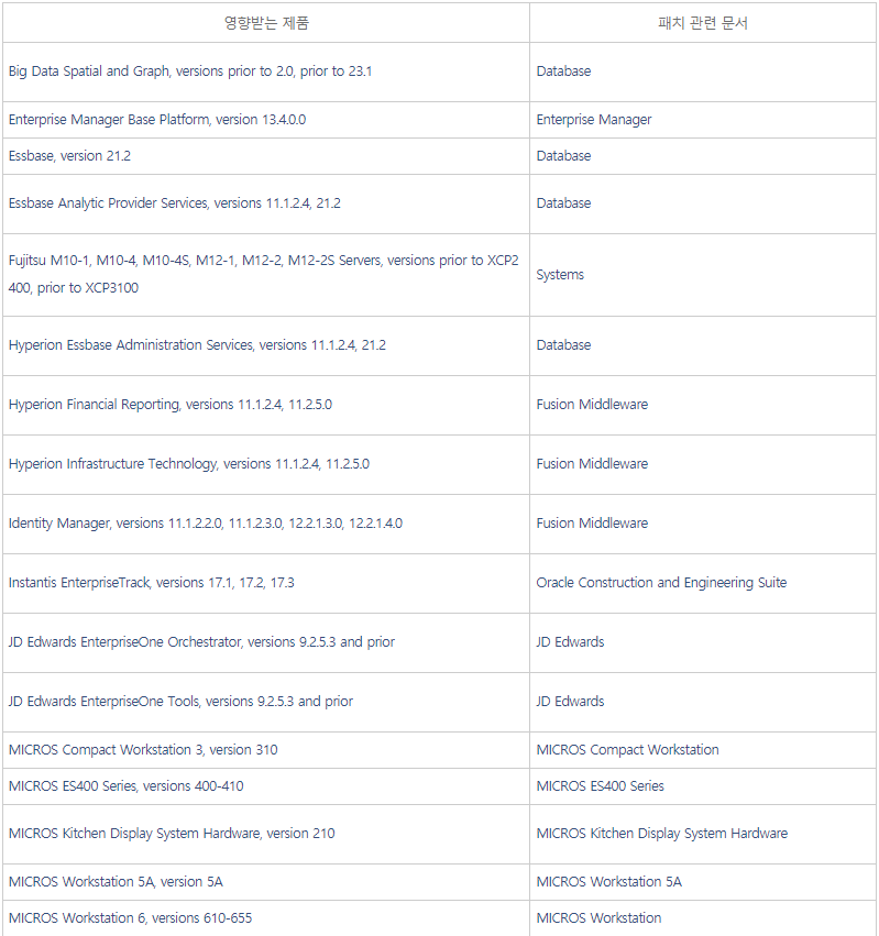 ※ CPU(Critical Patch Update) : 오라클 중요 보안 업데이트
