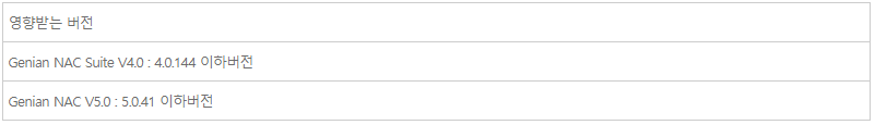 o 지니언스社는 NAC(Network Access Control)제품에서 발생하는 보안취약점에 대한 보안 업데이트 공지 [1]