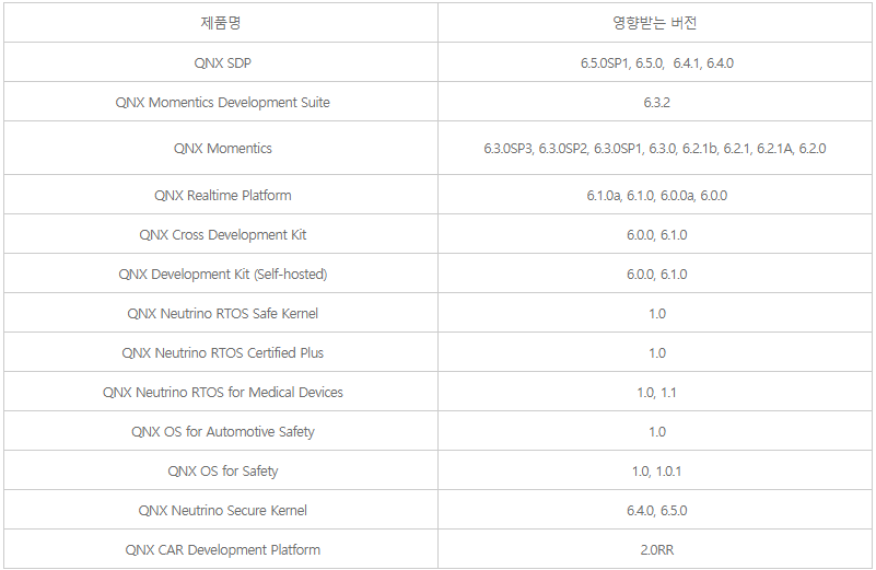 ※ QNX RTOS : 실시간 환경을 지원하는 유닉스 계열의 서버 운영체제