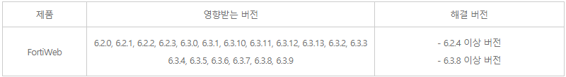 o Fortinet社는 자사 제품에서 발생하는 취약점을 해결한 보안 업데이트 발표 [1]