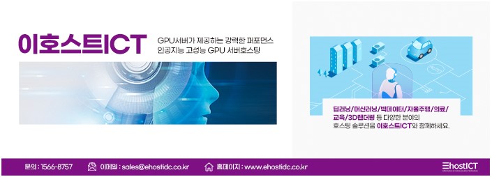 한편, 이호스트아이씨티는 인공지능(AI) GPU 서버 전문 플랫폼인 ‘AIOCP’를 오픈하여 GPU에 기반한 AI 호스팅 서비스를 맞춤형 컨설팅과 함께 제공하고 있다. 국내뿐 아니라, 전 세계 20개국에 글로벌 POP를 구축하여 활발한 해외 서비스를 제공하고 있다.