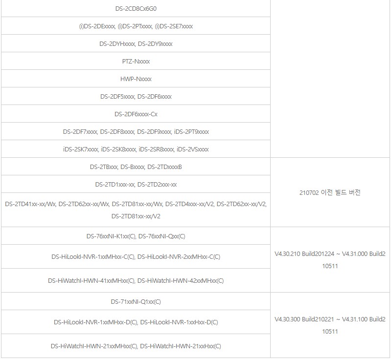 o HIKVISION社는 자사 제품에서 발생하는 취약점을 해결한 보안 업데이트 발표 [1]