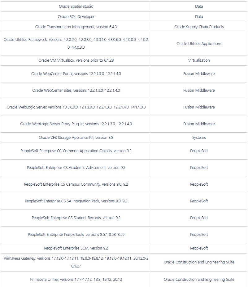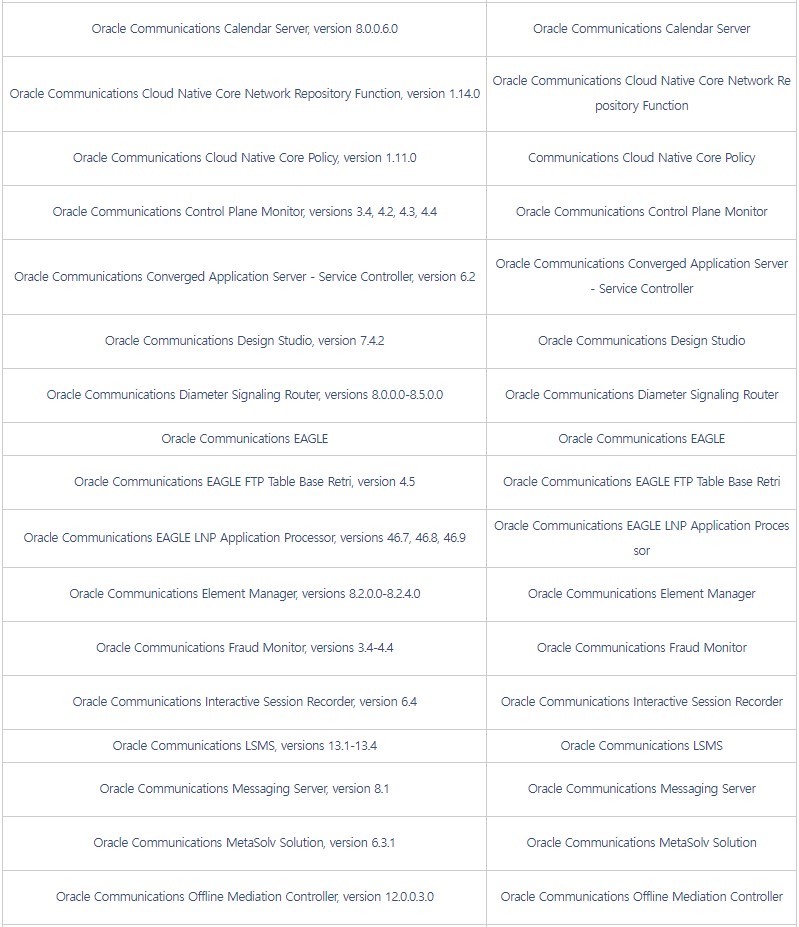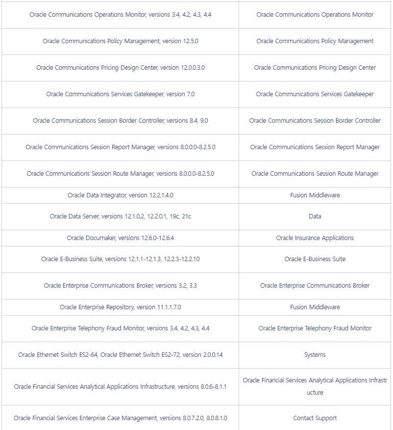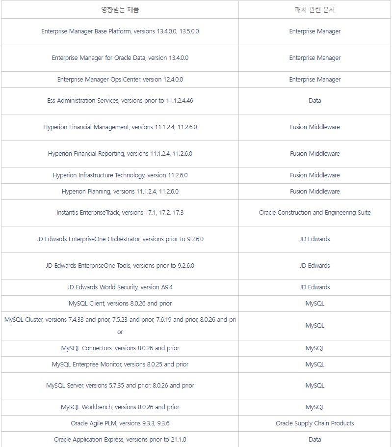 o 오라클社 CPU에서 자사 제품의 보안 취약점 419개에 대한 패치 발표 [1]