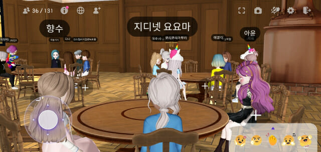 주변 인물들도 반응 정도는 해달라는 지시에 기자도 ‘오케이’ 시늉을 하는 이모티콘 버튼을 눌렀다. 촬영이 지속되는 20여분 간 간간히 반응 이모티콘을 쓰고, 세트장을 잠시 돌아다니다 나왔다. 이번 장면에서의 촬영이 끝나고 제작진들은 다음 세트장이 마련된 다른 모임방으로 이동했다.