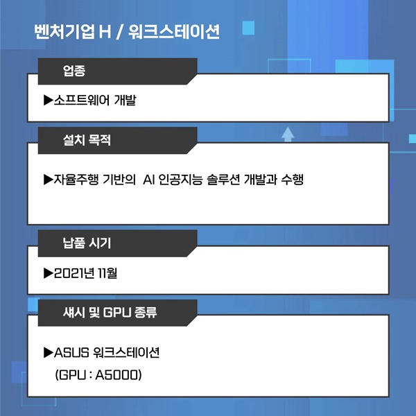 벤처기업 H / 자율주행 AI 솔루션 개발 목적의 워크스테이션 납품 사례