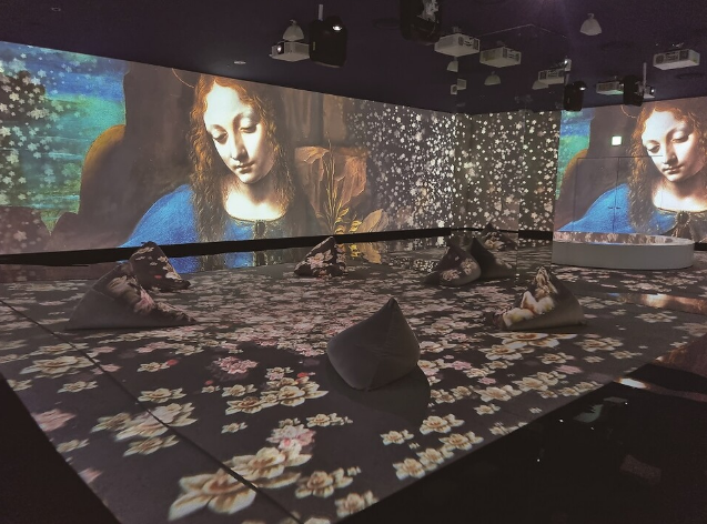 관람객이 벽과 바닥, 천장에 투영된 360° 애니메이션 이미지의 회오리에 휩싸여, 고민 없이 작품에 몰입할 수 있는 공간이다. 40분간 음악과 다빈치의 작품 속 색감을 감상할 수 있으며 그가 고안한 기계와 엔지니어링 발명품은 애니메이션 3D 모델로 재현했다.