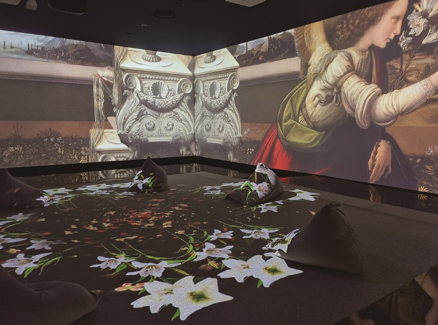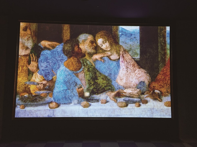 레오나르도 다빈치의 가장 유명한 작품 ‘최후의 만찬’을 최고 해상도로, 원본과 동일한 사이즈로 구현한 작품이다. 방문객은 사도들의 손, 몸짓, 식탁과 식기의 차림새 등 디테일을 꼼꼼히 관찰할 수 있다. 다음 전시 존에도 <모나리자>, <수태고지>, <담비를 안고 있는 여인> 등의 명작을 재현한 미디어 작품이 이어진다.