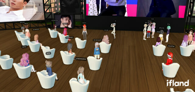 두 번째, 이프랜드에 최근 실시간 영상 송출 기능이 추가되면서 가수들의 실시간 모습을 이프랜드 내 스크린으로 확인할 수 있었다. 처음엔 VR 아바타로 만났다 나중에 실물을 접하게 되니 팬들의 기대감을 높일 수 있었다.
