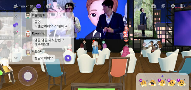 노랫말이 흘러나오는 동안 팬들은 채팅을 했다. 팬들은 “노래가 정말 감동적이에요”, “여러분 공연 끝나고 다같이 하트 리액션 날려요”, “실제 사람 모습은 언제 나오나요?”, “앵콜 해주세요” 등의 말을 남겼다.