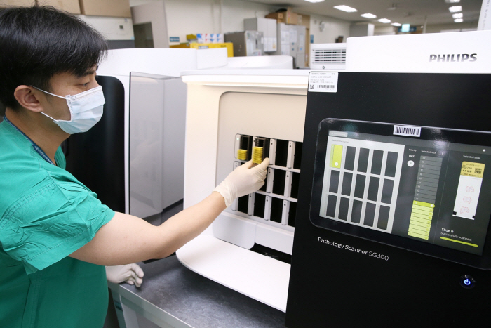 서울아산병원은 디지털 기술에 기반해 병리진단 프로세스의 효율을 극대화하고 궁극적으로는 환자 맞춤 정밀의료를 실현하기 위해 검체 슬라이드의 정리부터 분류, 진단, 저장, 활용에 이르는 모든 과정을 디지털화하는 디지털 병리 시스템을 올해부터 전면 도입해 시행한다고 18일 밝혔다.