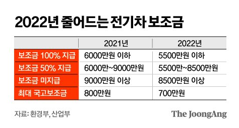 앞서 산업통상부·환경부 등이 ‘2022년 전기자동차 보조금 지침 개편안’을 발표한 뒤 전기차를 사려던 소비자들이 술렁이고 있다. 자동차업계도 가격을 저울질하고 있다.