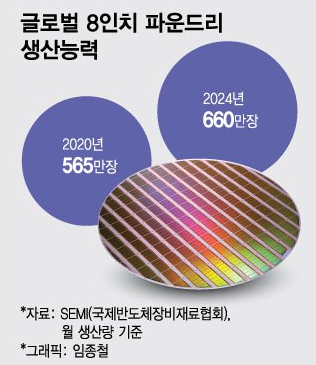 현재 반도체 공급난에서 가장 두드러지는 부품인 자동차 반도체 MCU(마이크로컨트롤러유닛)과 가전·TV·IT 기기에 쓰이는 전력관리반도체(PMIC), 스마트폰에 필수적인 디스플레이구동칩(DDI) 등 아날로그 반도체가 8인치 기반이다.