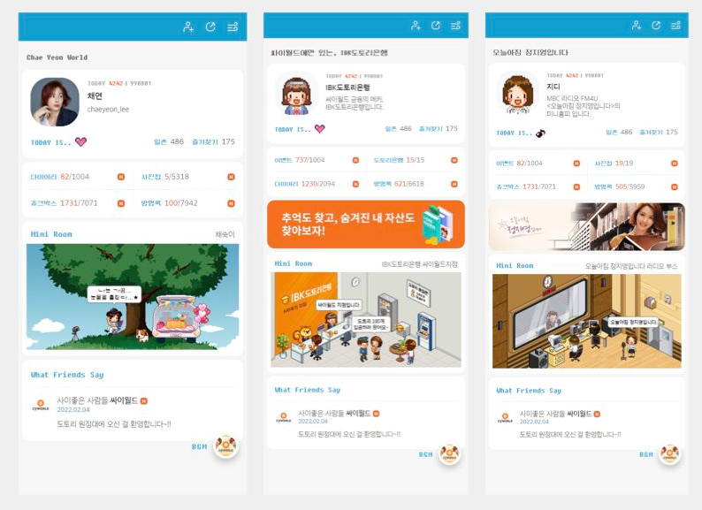 싸이월드가 21일 공개한 앱 내 미니홈피/싸이월드제트 제공