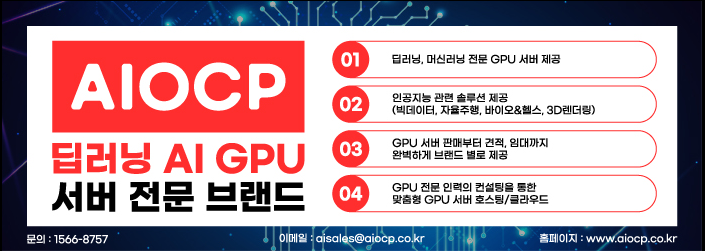 이호스트ICT의 서버 전문 브랜드 AIOCP가 홈페이지를 부분 리뉴얼했다고 밝혔다. 해당 리뉴얼의 주요 내용은 AI 인프라 신사업 육성과 관련한 부분이다. 인공지능 연구&개발을 위해 필요한 모든 장비와 IDC 컨설팅까지 1:1 컨설팅을 통해 원스톱 패키지화 하겠다는 전략이다.