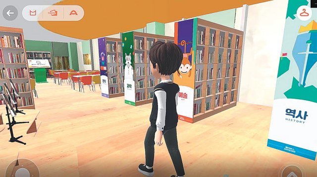 흔한 교실 풍경 같지만, 사실은 ‘교실’을 매개로 한 가상세계의 모습이다. 웅진씽크빅의 인공지능(AI) 학습 플랫폼 ‘스마트올’에 구축한 메타버스(3차원 가상세계)의 한 장면이다. 학생은 자신을 닮은 3차원(3D) 아바타를 만든 후 학습은 물론이고 친구들과 교류도 할 수 있는 ‘가상의 학교세계’를 체험하게 된다. 현재는 실제 친구가 아닌 AI와 대화하는 수준이다. 웅진씽크빅 관계자는 “(친구끼리 소통 시) 언어폭력 등의 문제를 미리 차단하기 위한 연구를 교육전문위원들과 진행 중”이라고 밝혔다. 웅진씽크빅은 교실뿐 아니라 전자책을 읽을 수 있는 도서관, 유명 작가들의 작품을 접할 수 있는 사이버 갤러리 등으로 학교 메타버스 세계를 확장 중이다.