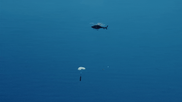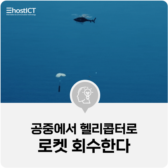 낙하산을 펴고 천천히 떨어지는 로켓 위로 특수 갈고리를 매단 또 하나의 헬리콥터가 다가가 갈고리를 낙하산에 걸어 로켓을 안전하게 회수하게 된다.