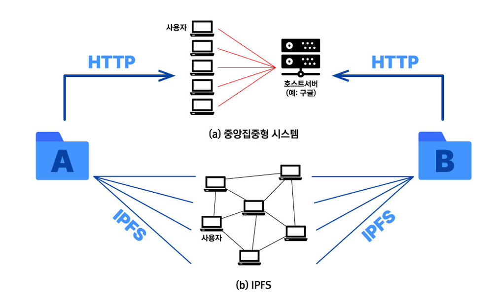 IPFS는 Interplanetary File System, 즉 분산형 파일 시스템의 줄임말로, 분산 데이터 저장 및 다운로드 기능에 블록체인이 가진 추적성과 유일성을 보완하여 파일마다 고유한 해시 값을 부여하여 저장하고, 관리 및 조회와 검색 기능을 결합하여 디지털 데이터 파일을 전 세계 PC에 분산하여 저장하고 공유될 수 있도록 고안된 파일 시스템이다.