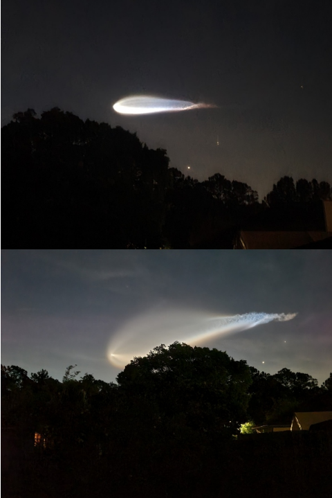 우주 해파리는 이날 플로리다 해안가 하늘을 가로질렀다. 과학 전문매체 라이브 사이언스는 팰컨9 엔진 노즐의 내부와 외부의 압력차로 인해 방출된 배기가스가 팽창하며 이같은 형태를 띈다고 설명했다.