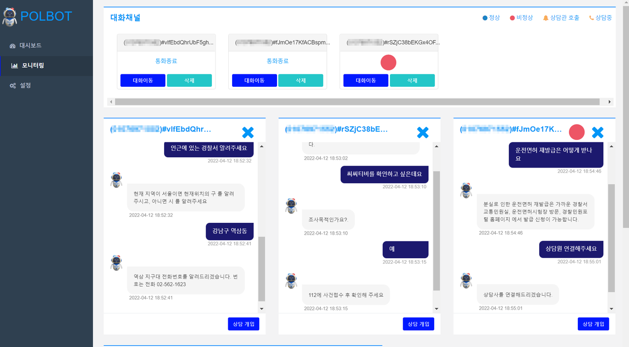 셋째로, 상담관이 민원인과 폴봇이 대화하는 과정을 모니터링하다가 중간 개입이 필요하다고 판단하여 직접 개입하는 상황이다.