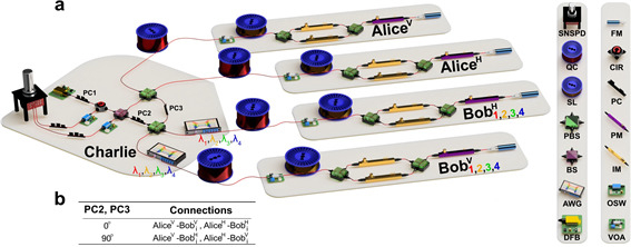 연구팀은 또한 편광, 시간, 파장 분할 기술을 적용하여 2:N 네트워크로 확장 가능한 새로운 TF QKD 네트워크 구조를 제안하고 실험적으로 검증했다. 이는 세계에서 두 번째로 TF QKD 네트워크 실험 검증에 성공한 사례다. 최초의 연구사례는 링(Ring) 네트워크 구조인 반면 연구팀의 구조는 별(Star) 네트워크 구조다. 링 구조는 양자신호가 링에 연결된 모든 곳을 지나야 하지만, 별 구조에서는 중심부만 거치기 때문에 보다 실용적인 QKD 시스템 구현이 가능하다.