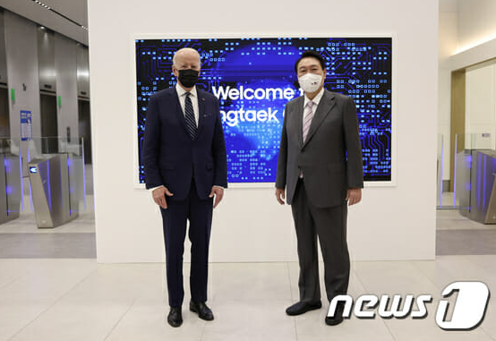 윤석열 대통령과 조 바이든 미국 대통령은 지난 20일 삼성전자 평택 공장에서 회동해 양국간 '반도체 동맹'을 선언했다. 바이든 대통령은 한국 방문의 첫 행선지로 삼성전자 반도체 공장을 택하면서 사실상 동맹국 중심의 안정적인 반도체 공급망 확보를 위해 추진하는 '칩4(한국-미국-일본-대만) 동맹'에 한국의 동참을 이끌어 낸 셈이다. 또한 자국 내 텍사스주 테일러시에 지어질 삼성 반도체 공장을 간접적으로 대외에 알리면서 11월 중간 선거에 대비한 효과까지 얻었다.