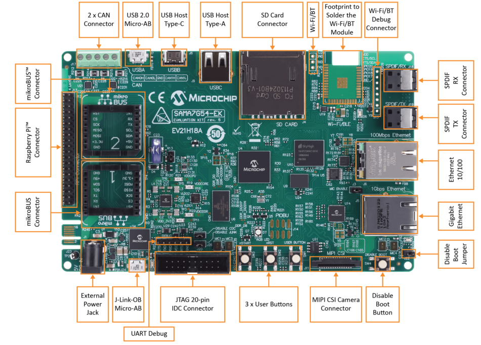 마이크로칩은 SAMA7G54를 위한 하드웨어 및 소프트웨어 개발을 모두 지원한다. SAMA7G54-EK 평가키트(CPN 번호: EV21H18A)에는 커넥터 및 확장 헤더를 갖추고 있어 쉽게 커스터마이징하고 첨단 엣지 임베디드 기능에 빠르게 접근할 수 있다.