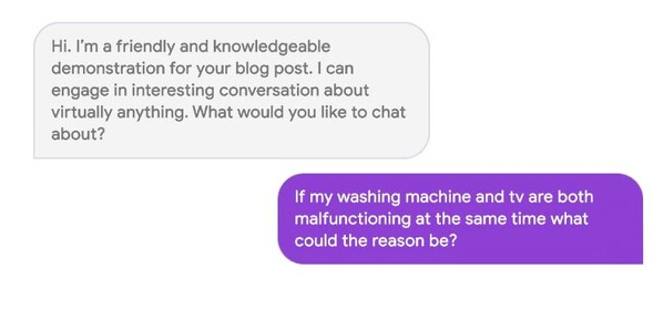 람다가 사람처럼 애기하니 사람처럼 지각이 있다는 생각이 들었다고 해도 동문서답을 하는 상황을 한번 겪고 나면 자의식이 있다는 판단이 유지될 수 있을지는 미지수다. 동문서답 이후 람다가 다시 사람처럼 말한다고 해서 '사라진 그 느낌'이 다시 돌아올 수 있을지도 마찬가지다.