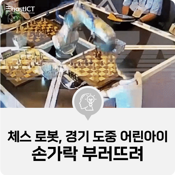 러시아 모스크바 체스 대회 현장. 대회에 참가한 체스 로봇이 경기 상대로 맞은편에 앉아 있는 남자아이의 손가락을 몇 초 동안 꽉 잡고 놔주지를 않는다. 당황한 주변 사람들이 달려들어 로봇 팔에서 아이 손가락을 빼내는 모습이 현지 텔레그램 채널 바자(Baza)에 공개된 영상 속에서 포착됐다. 도대체 무슨 일이 일어난걸까?