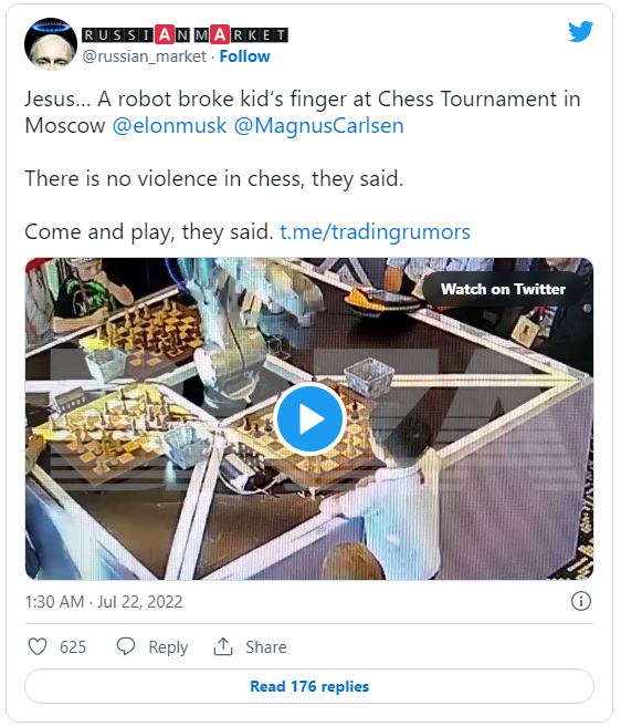 체스 로봇, 규칙 어긴 7세 소년 손가락 잡아 골절상 입혀