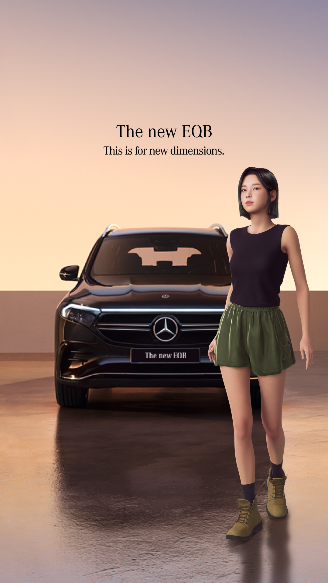 이 영상은 벤츠의 패밀리 전기 SUV인 더 뉴 EQB의 디지털 쇼케이스에 앞서 진행되는 사전 홍보용 콘텐츠다. 모델, 제품, 공간이 모두 풀 3D와 리얼타임 언리얼 엔진으로만 제작돼 기존 광고 대비 인력, 비용, 시간을 크게 절감했다.
