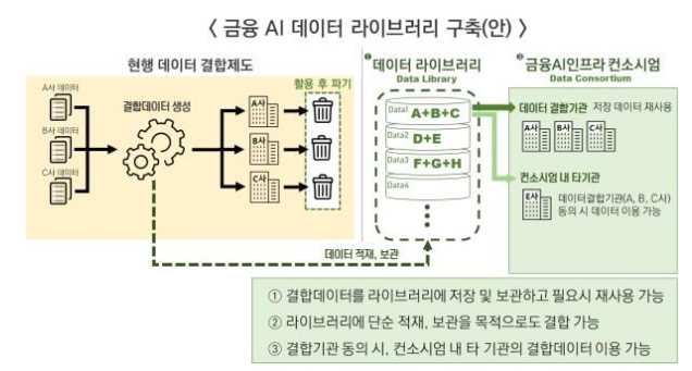 금융당국은 규제 샌드박스 등을 통해 데이터 결합 후 재사용을 허용하는 '금융 AI 데이터 라이브러리' 구축을 추진한다.