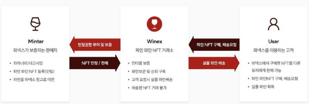 고가의 와인의 경우 잦은 이동이 와인의 품질 저하를 유발하고, 품질보증의 측면에서 추적이 어렵다는 특성이 있다. 와넥스는 실물 와인은 프랑스 현지 창고에 보관하고 해당 와인의 정보가 담겨 있는 NFT 보증서를 거래하는 방식을 채택했다.