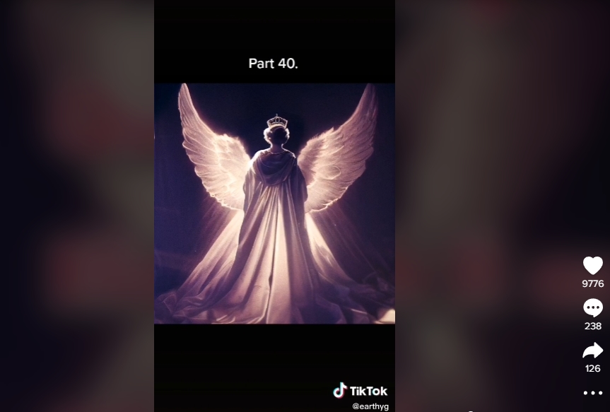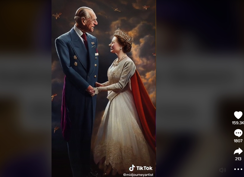 특히 틱톡의 '미드저니아티스트(midjourneyartist)'라는 유저는 엘리자베스 여왕이 먼저 세상을 떠난 남편 필립공과 천국에서 재회하는 모습을 그려 업로드 이틀 만에 100만여건의 조회수와 16만여건의 '좋아요'를 받았다.