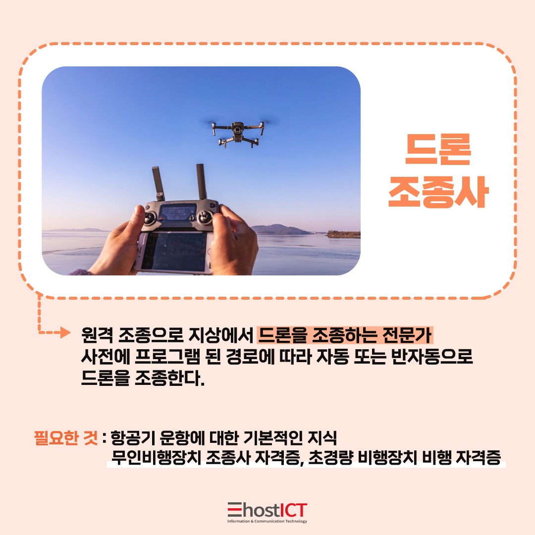 드론 전문가는 해당하는 분야에 따라 크게 드론 조종사와 드론 개발자로 구분이 되는데요. 드론 조종사는 다양한 형태의 드론을 전문적으로 조종하며, 드론 개발자는 새로운 제품을 개발하거나 성능 향상을 위한 기술 개발 업무를 주요하게 수행 하게 됩니다.