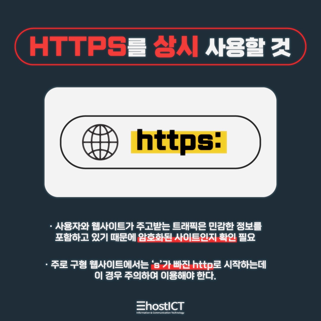 https는 http에서 보안성을 더욱 강화한 프로토콜인데요. 사용자와 웹사이트가 주고 받는 트래픽에 민감한 정보를 포함하거나, 인증 수단을 활용하게 된다면 특히나 이 부분을 확인 하는 것이 좋습니다. 즉, 암호화된 사이트인 지 확인하기 위해서는 가장 기본적으로 https 프로토콜 사용 여부를 파악해야 한다는 것입니다.