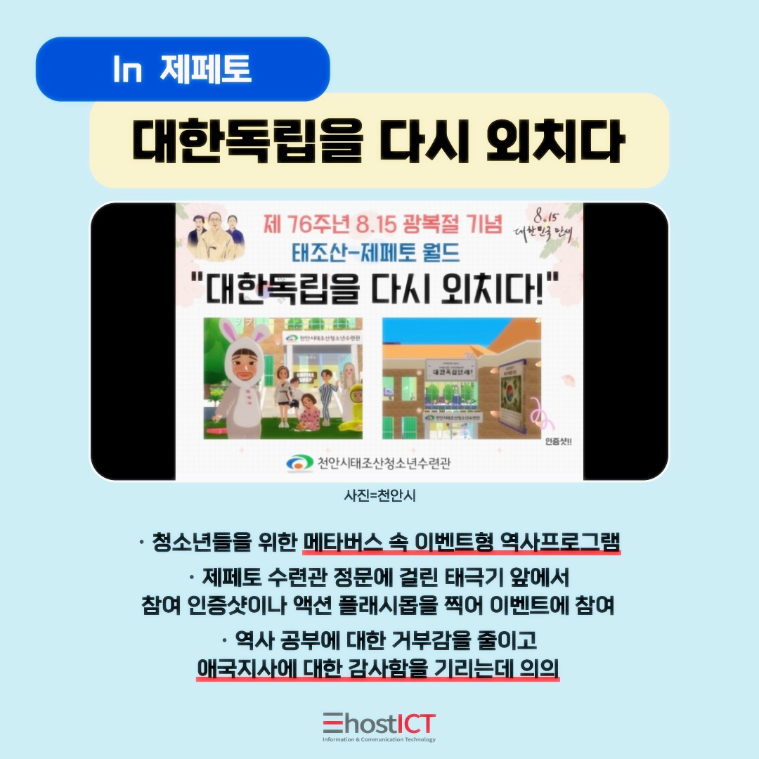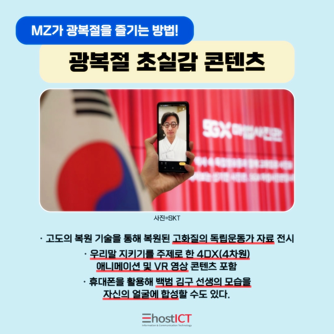 밀레니얼+Z세대를 뜻하는 MZ세대가 AR, VR 등 각종 IT 첨단 기술을 활용하여 대한민국의 8.15 광복절을 맞이하고 있습니다.