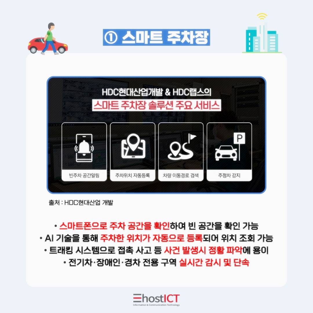 스마트하우징의 첫번째 사례로는, '스마트 주차장'이 있습니다. 현대인에게 주차는 늘 '운이 좋아야' 쉽게 처리할 수 있는 과제인 것 같은데요. 스마트 주차장 솔루션이 도입된다면 스마트폰으로 주차 공간을 사전에 확인 후 유휴 자리들을 확인할 수 있습니다.