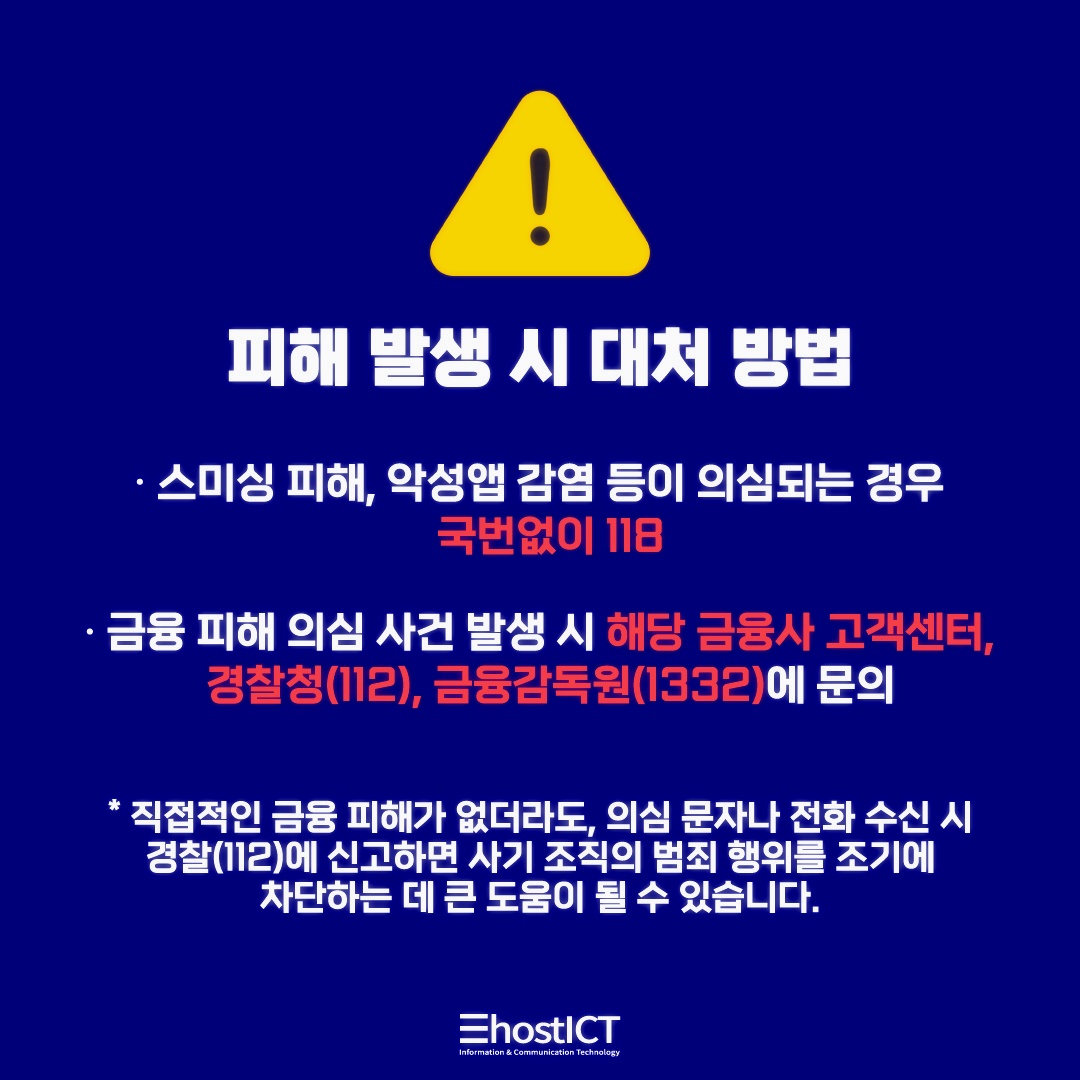※직접적인 금융 피해가 없더라도, 의심 문자나 전화 수신 시 경찰(112)에 신고하면 사기 조직의 범죄 행위를 조기에 차단하는 데 큰 도움이 될 수 있습니다.