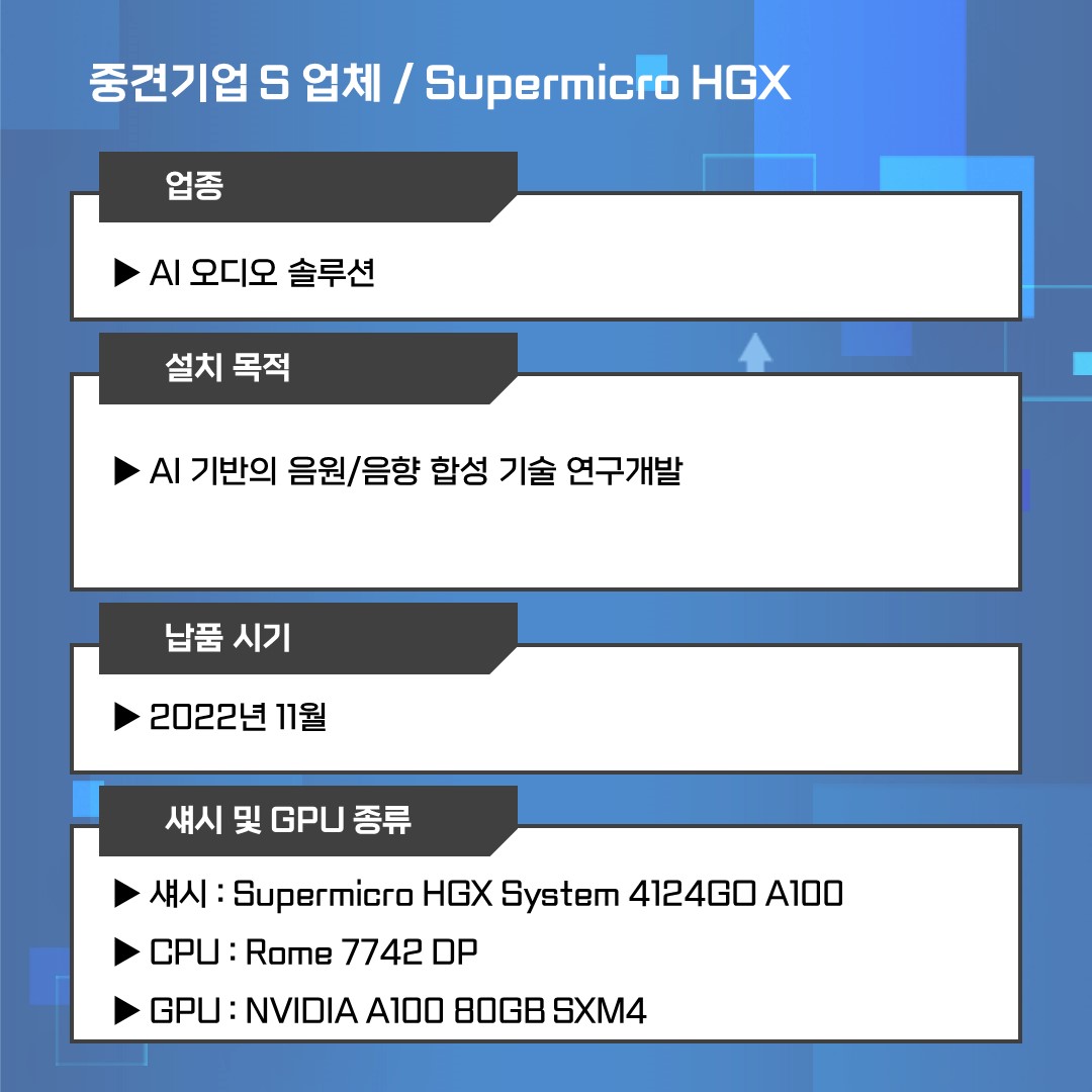 중견기업 S / AI 음성 합성 솔루션 연구&개발을 위한 HGX 납품 사례