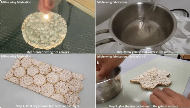 쌀과자로 날개를 만든 식용 드론